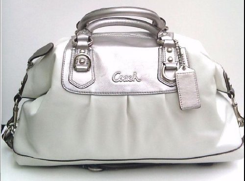 New Coach Ashley White Silver Leather Carryall F15513